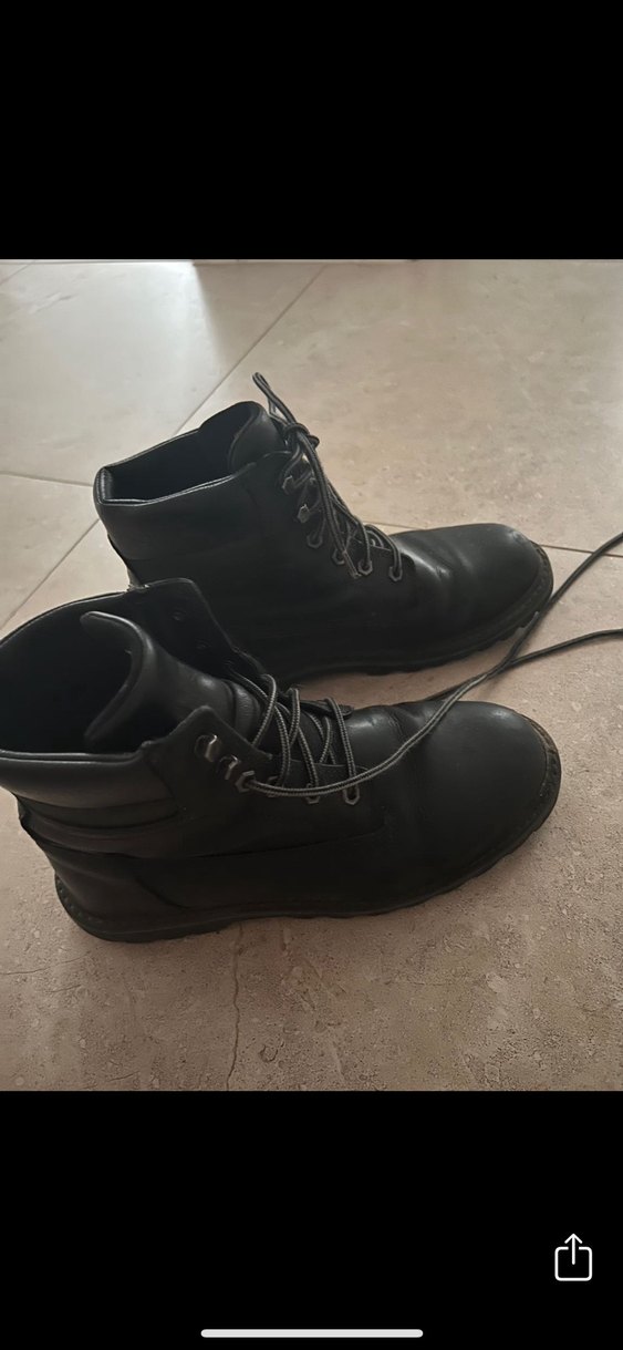 Siyah deri, desen içermeyen erkek botları. Minimalist tarzda, günlük kullanıma uygun şık ve koyu renkte.