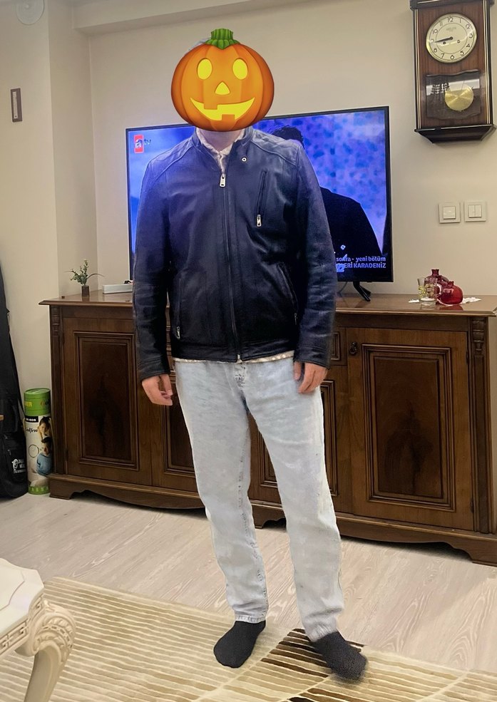 Siyah deri, notched lapel yakalı ve uzun kollu erkek ceket. Regular fit ve tokalı detaylara sahip, günlük sokak stili için uygun.