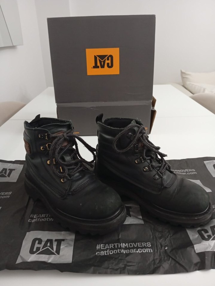 Siyah deri erkek çocuk veya kadın bot, tokalı detaylara sahip. CAT markasına ait, orjinal faturası ve kutusuyla gönderlecek, sokak stilinde, günlük kullanım için uygun. çok temiz altı bile yeni durumda sadece iplerini lsterseniz değiştirebilirsiniz yenisiyle