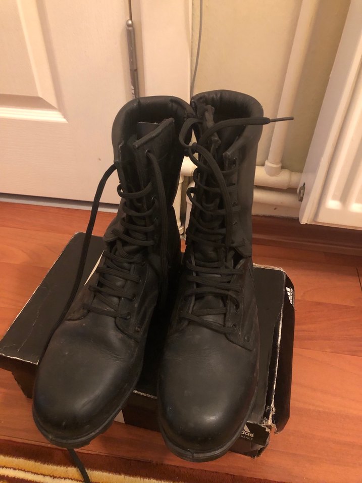 Siyah Deri Erkek Goth Botları Asker botu