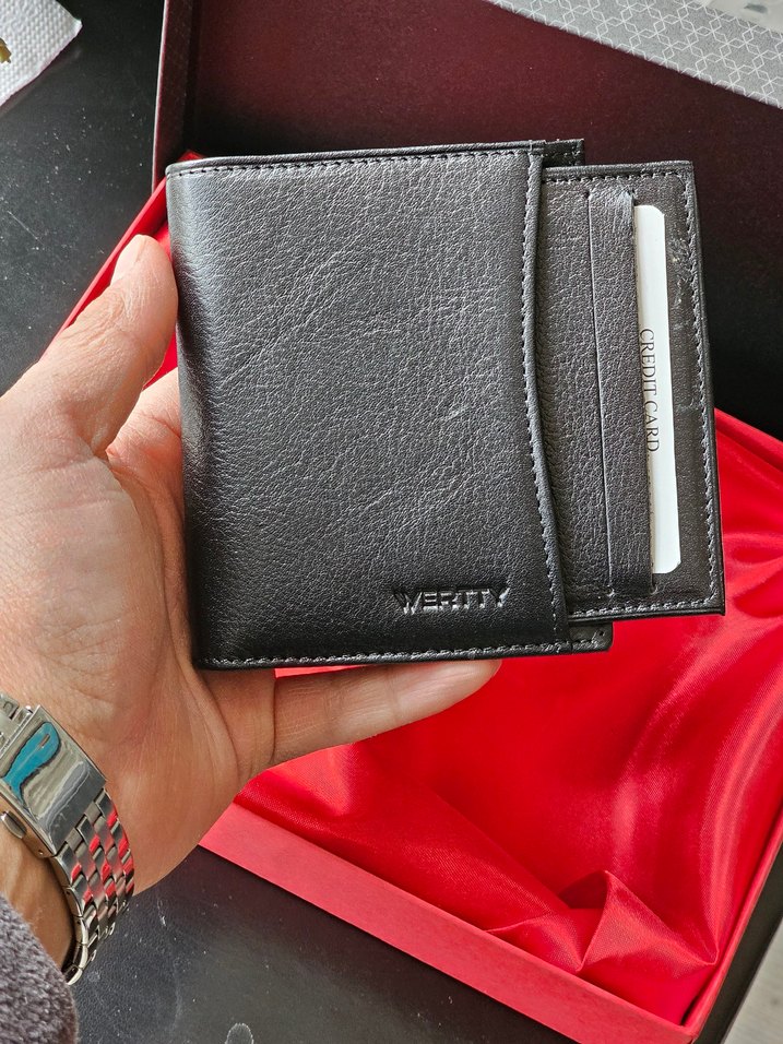 Siyah, desensiz erkek cüzdanı içinde kartlığıyla birlikte yumuşak ve dayanıklı A kalite premium deriden üretilmiştir. Minimal kabartmalı baskı ile rahat tutuş sağlar.