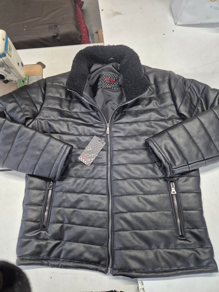 Siyah deri, kısa kesim erkek ceket, çıtçıtlı cepler ve yakasıyla sokak stiline uygun şık bir parça. Uzun kollu ve dar kesimdir.