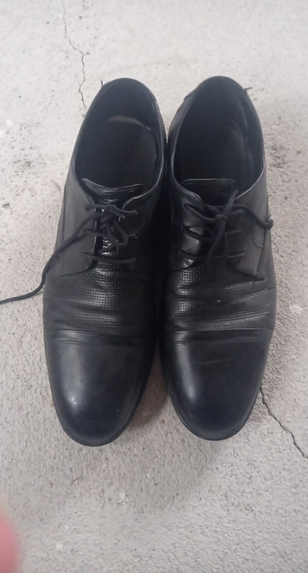 Siyah deri erkek klasik ayakkabı, bağcıklı ve tokalı detaylı. Hasarı yoktur