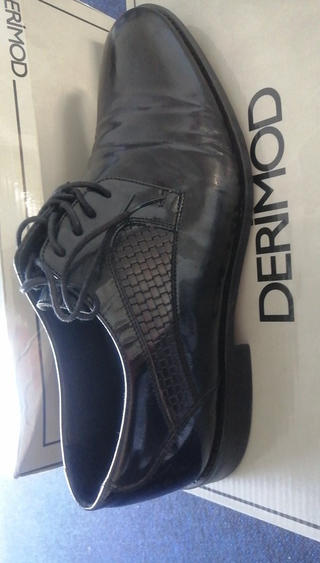 Siyah deri erkek klasik bağcıklı ayakkabı, ofis kullanımı için uygun yılan desenli detaylarla.