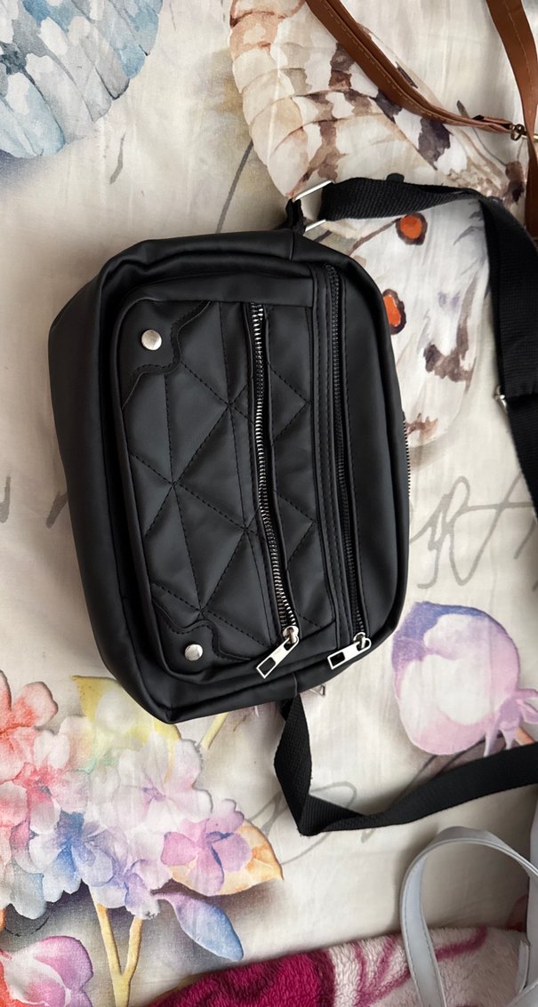 Siyah deri fermuarlı çapraz çanta, sokak stiline uygun ve günlük kullanıma ideal. Kapitone ön cepli ve ayarlanabilir askılıdır.