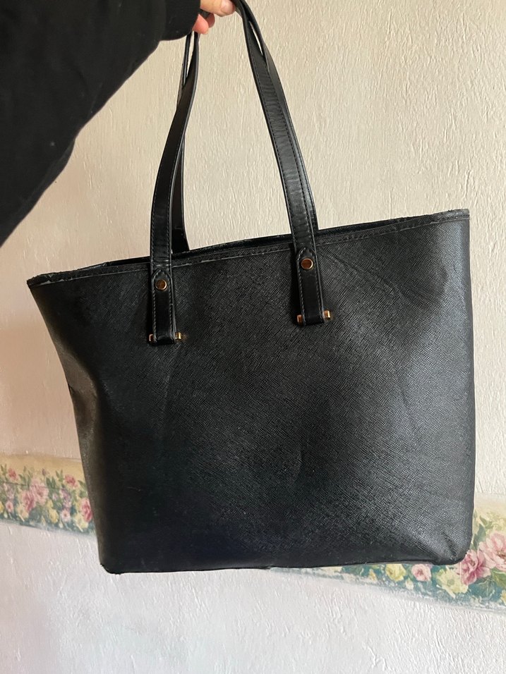 Siyah deri, fermuarlı, minimalist tasarımlı kadın çantası. Günlük sokak stiline uygun, düz ve şık görünümlü.