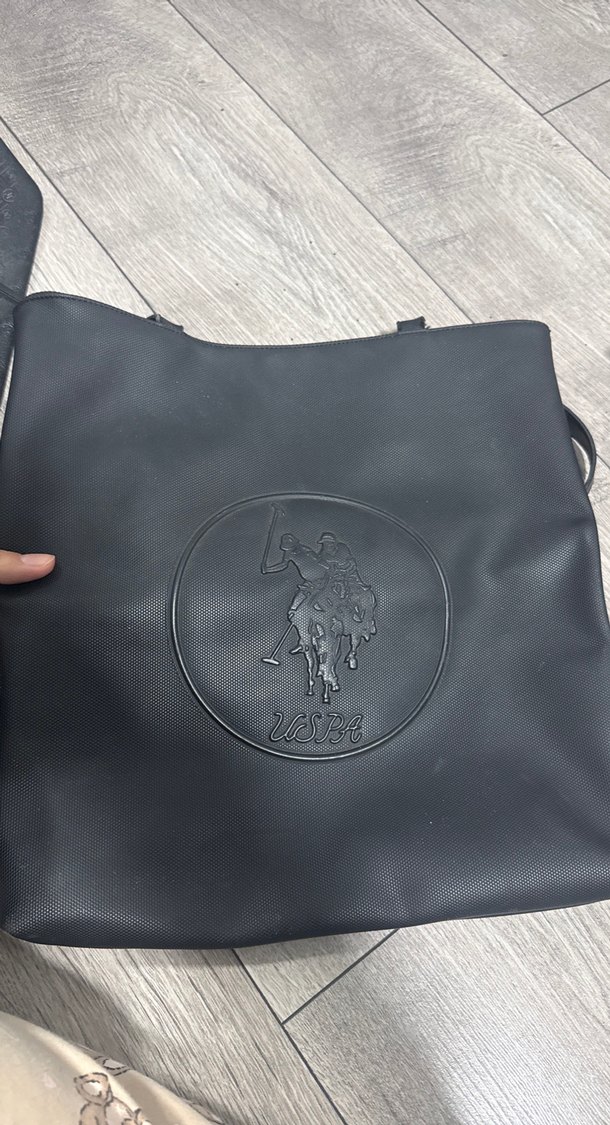 Fermuarlı kapamalı siyah deri kadın çantası, baskılı detaylıdır. Minimalist sokak stiliyle günlük kullanıma uygundur. İçine ders kitapları da sığıyor. Orijinal Polo markadır