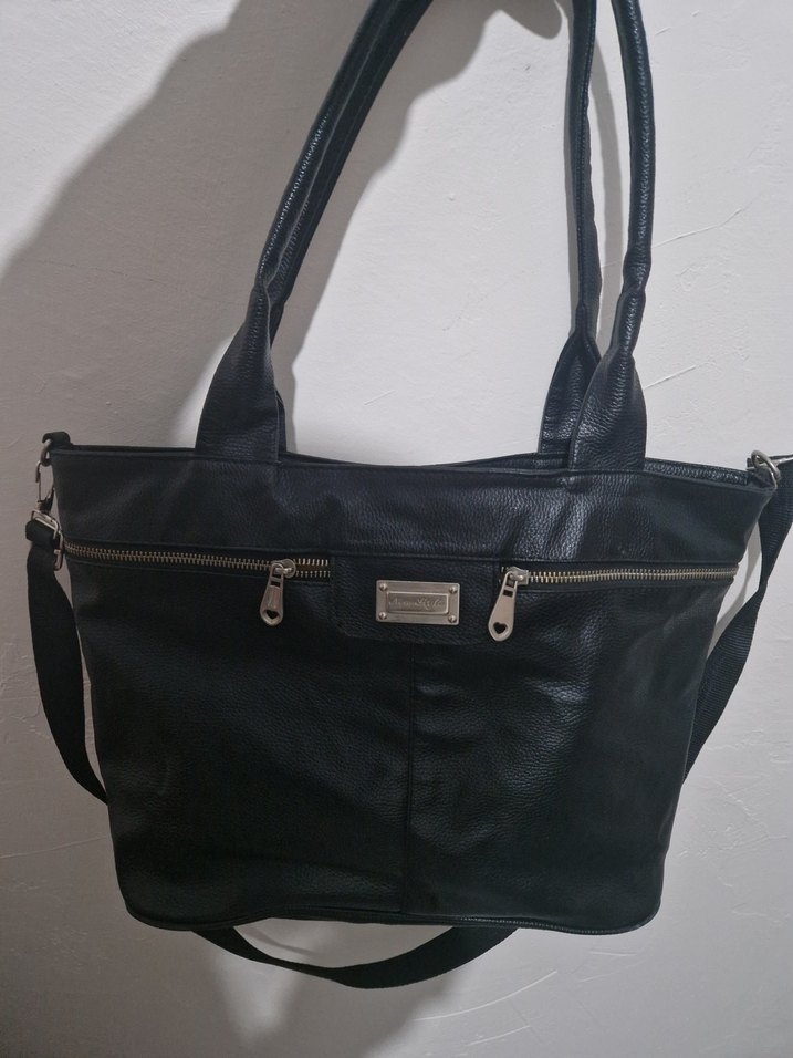 Parlak siyah deri kadın çanta, fermuarlı bölmeler ve minimalist gotik tarzıyla günlük kullanıma uygundur.