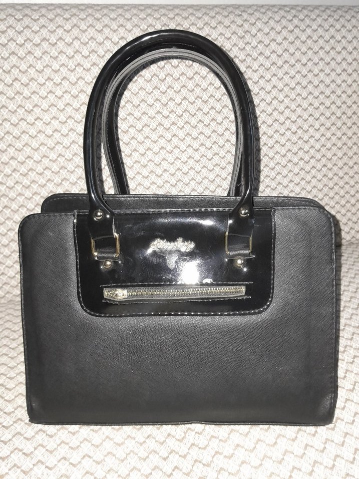Siyah deri kadın çanta, fermuarlı cep ve baskılı desenle klasik zarafet ve gotik tarzı bir araya getirir. Günlük kullanım için uygun.