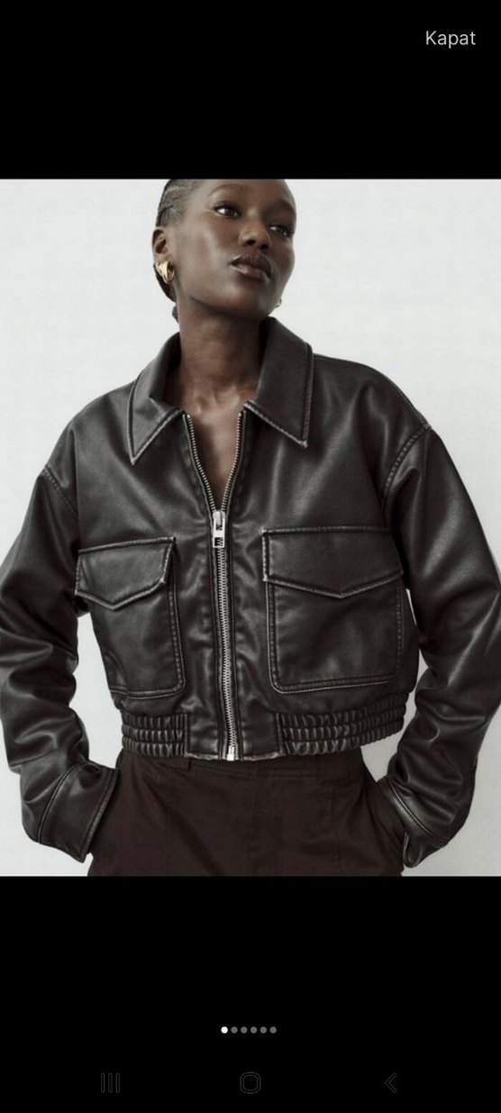 Siyah Deri Fermuarlı Kadın Ceket