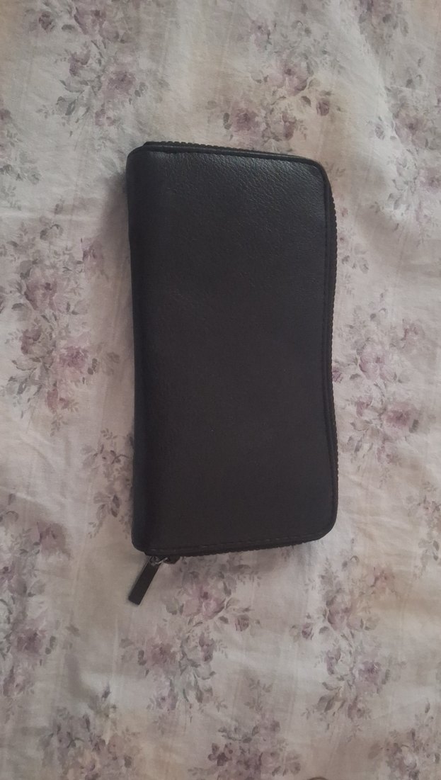 Siyah deri, fermuarlı kadın cüzdanı, desensiz tasarımıyla günlük kullanım için uygundur.