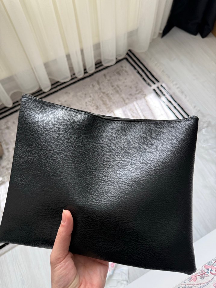 Siyah Deri Fermuarlı Kadın Portföy Çanta