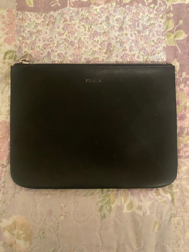 Siyah deri fermuarlı kadın portföy çanta, klasik zarafet ve gotik stilin birleşimi, ofis için uygun.orjinal furla.mağazasından alındı