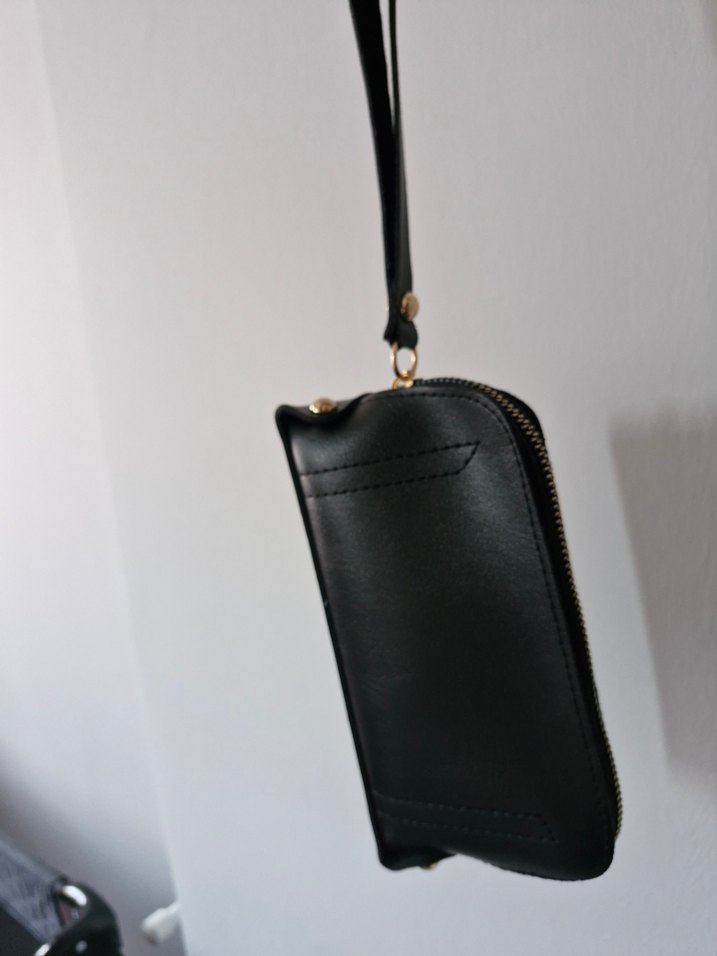 Siyah deri fermuarlı kadın portföy cüzdan, günlük kullanım için minimalist ve sade tasarıma sahiptir. Genç sokak modasına uygun, desensiz ve şık.