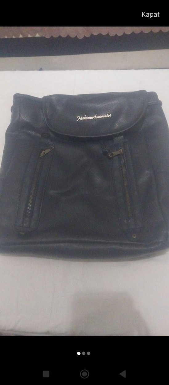 Siyah Deri Fermuarlı Kadın Sırt Çantası