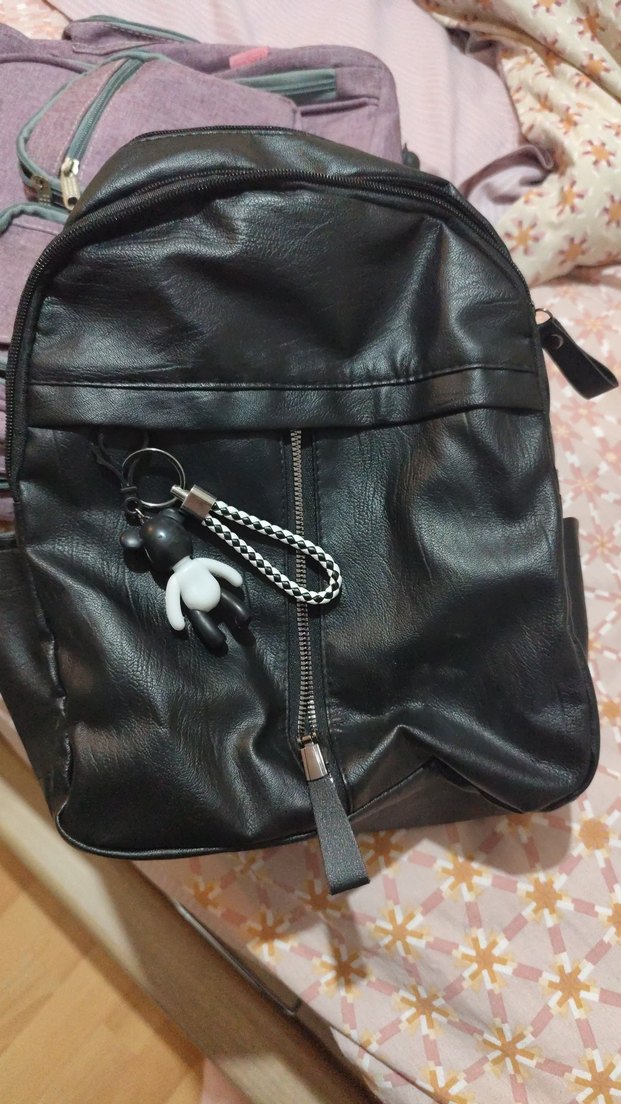 Siyah Deri Fermuarlı Kadın Sırt Çantası