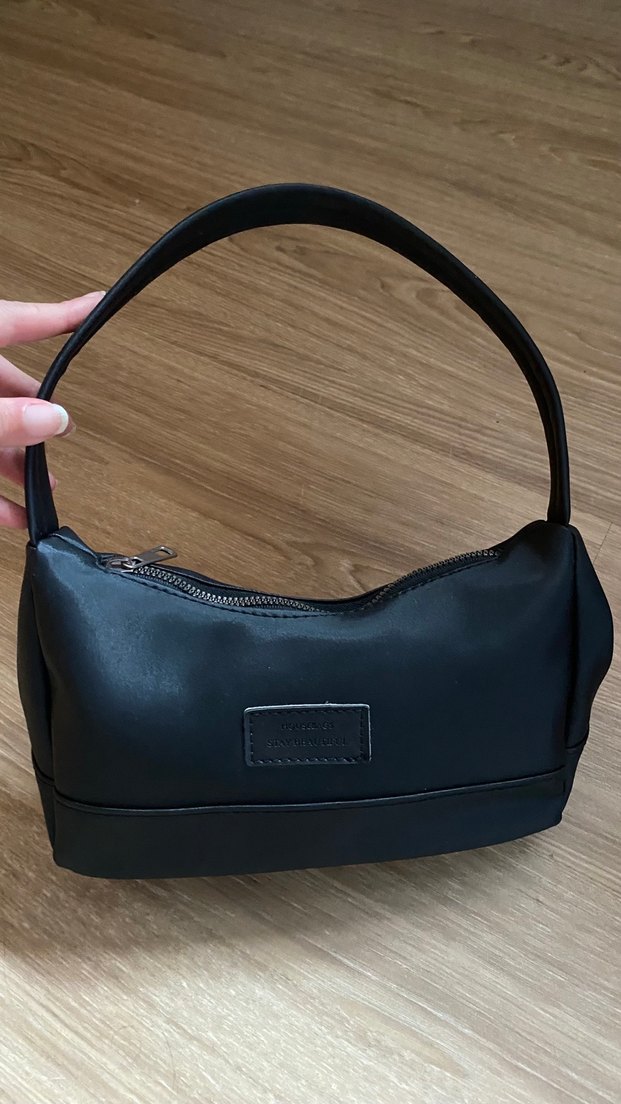 Siyah deri, fermuarlı, minimalist tasarımlı kadın çantasıdır. Trendy casual sokak stiline ve günlük kullanıma uygundur.