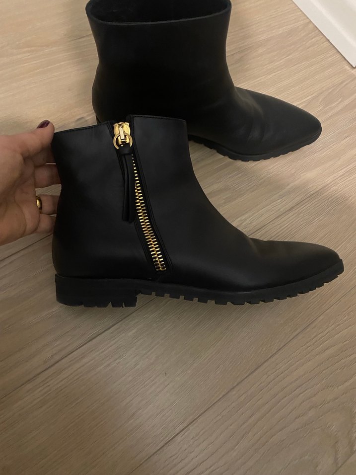 Siyah Deri Fermuarlı Stiletto Topuklu Kadın Bot