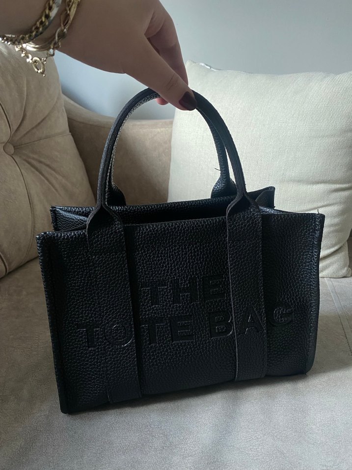 Siyah Deri Fermuarlı Tote Çanta - Görsel 1