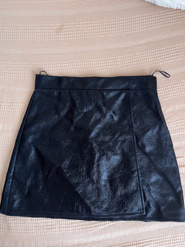Siyah Deri görünümlü mini etek