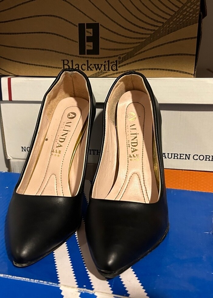 Siyah Deri Görünümlü Topuklu Ayakkabı