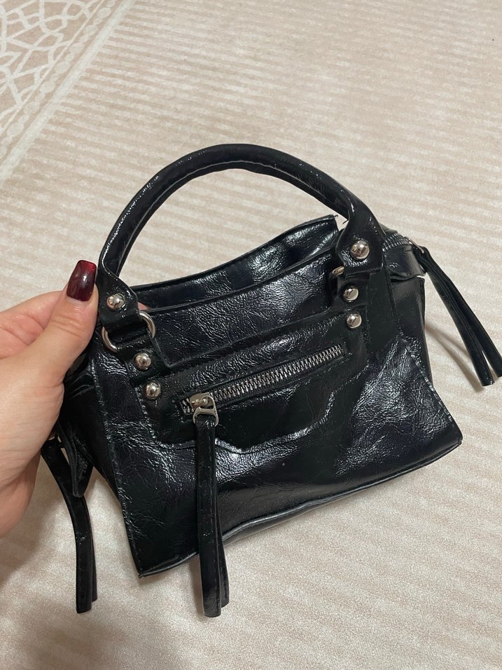Siyah Deri Goth Kadın Çanta