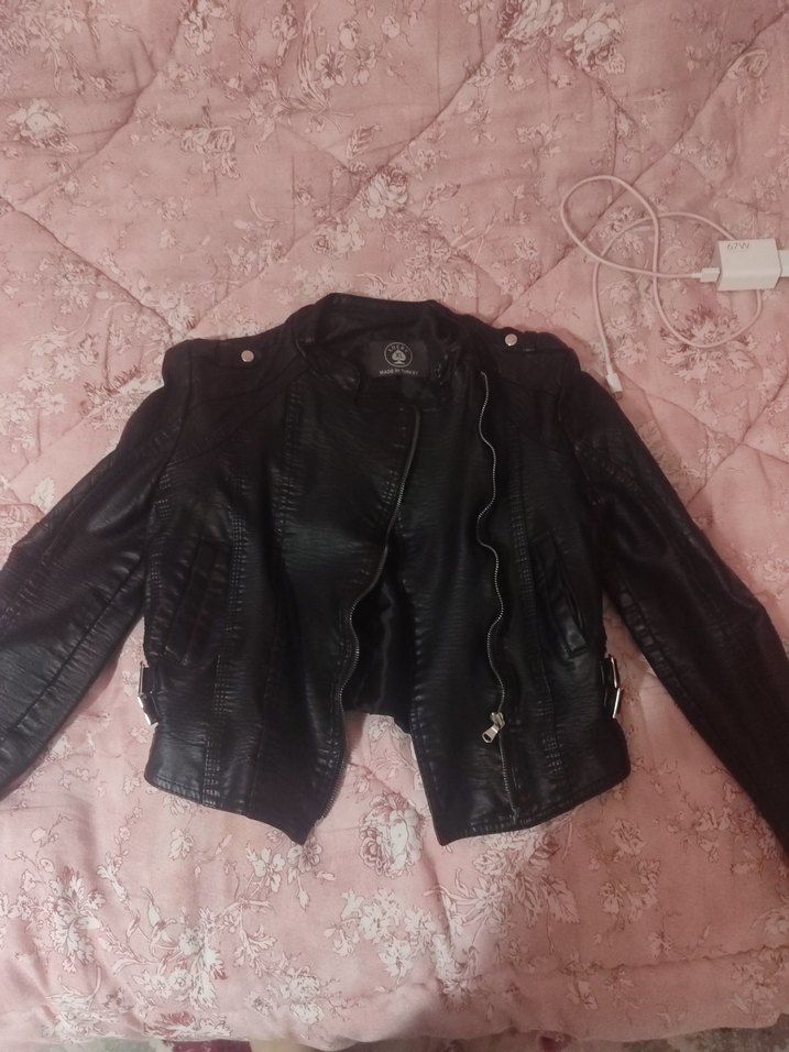Siyah deri, kemerli, notlu yaka ve kayışlı kollu, oturan kesim goth ve grunge punk tarzında midi boy cekettir. Rock punk havası sunar.