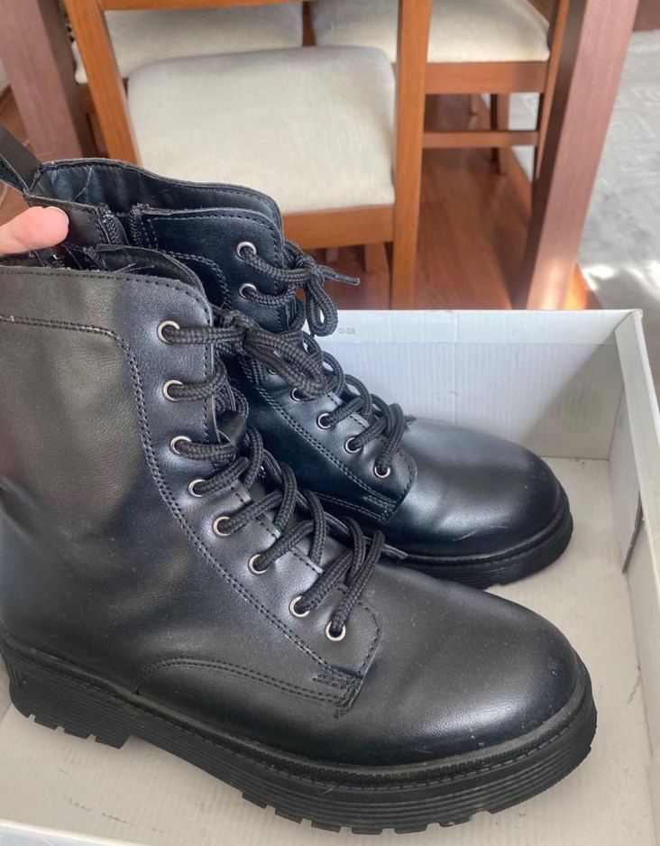 Siyah deri, tok topuklu, tokalı detaylara sahip goth ve grunge punk tarzı kadın botu. Günlük kullanıma uygundur.