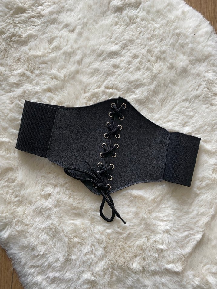 Siyah Deri Gotik Bağcıklı Korse Kemer
