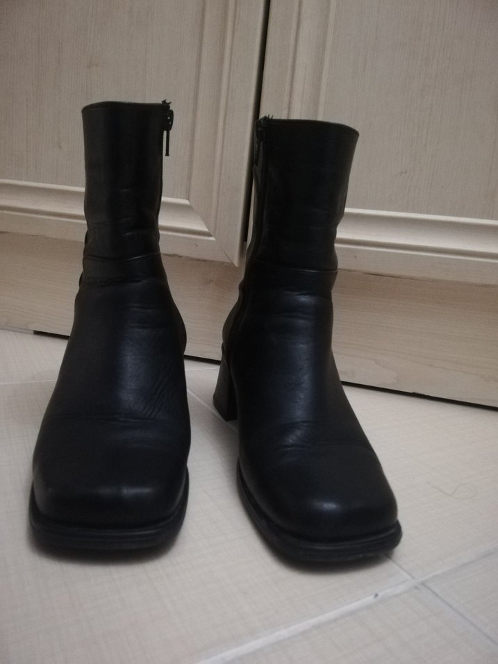 Siyah yüzde yüz deri, blok topuklu, tokalı gotik tarzda kadın bot. Günlük kullanım için uygun, desen içermeyen koyu renkte. Topuk 5 cm küçük geldiği için giyilmedi sıfır