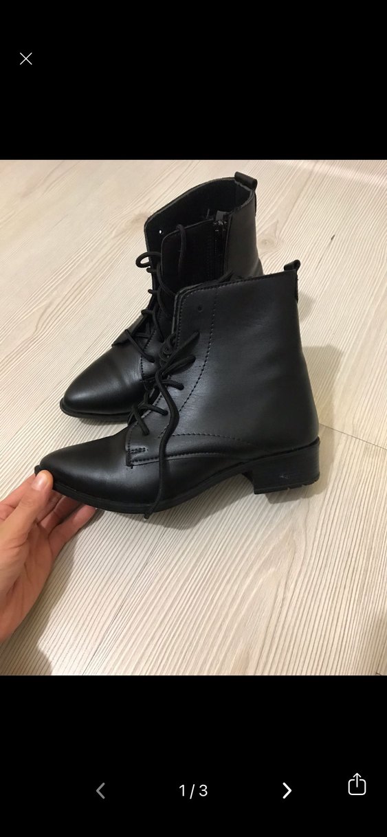 Siyah deri, blok topuklu, tokalı ve bağcıklı gotik kadın botları, günlük kullanım için uygun. Hiç kullanılmamıştır fazlalıktan satıyorum