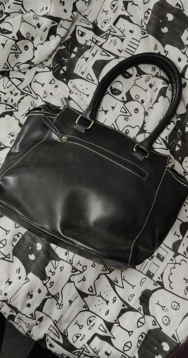 Siyah deri, fermuarlı, gotik ve Parisli avangart tarzda günlük kullanıma uygun kadın çantası.