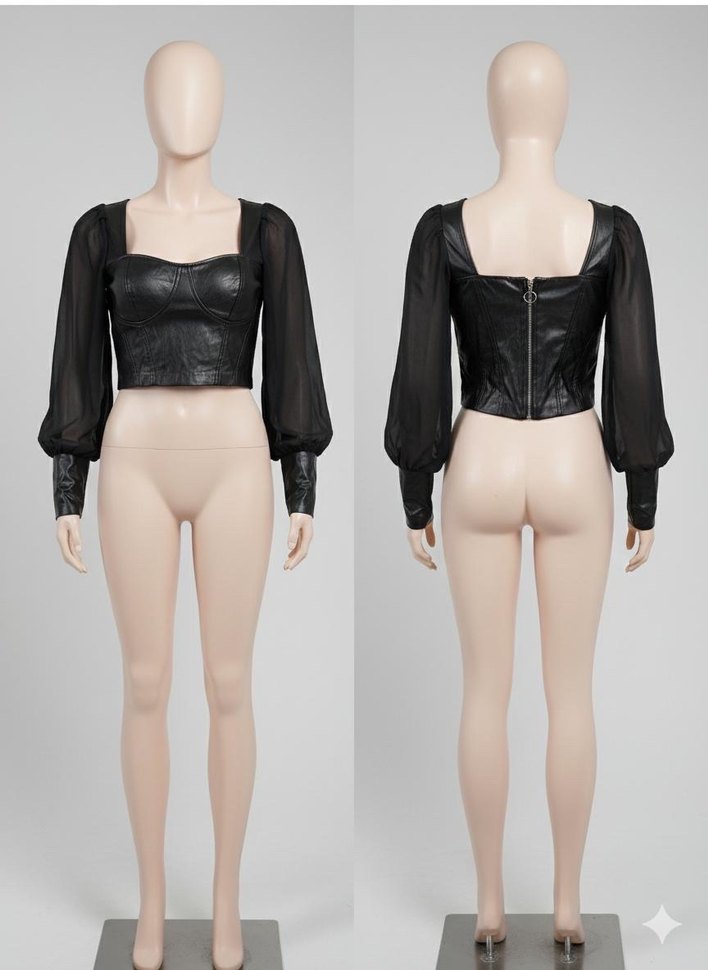 Siyah Deri Gotik Mini Bluz