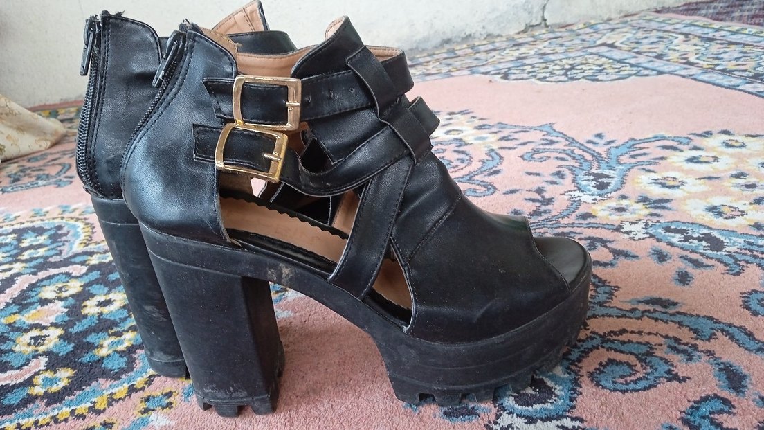 Siyah deri, tokalı kayışlı ve desenli gotik platform topuklu kadın ayakkabısı. Trendsetterlar için uygun. Fiyatta yardımcı olurum mesaj atabilirsinizz. marka temsilidir.