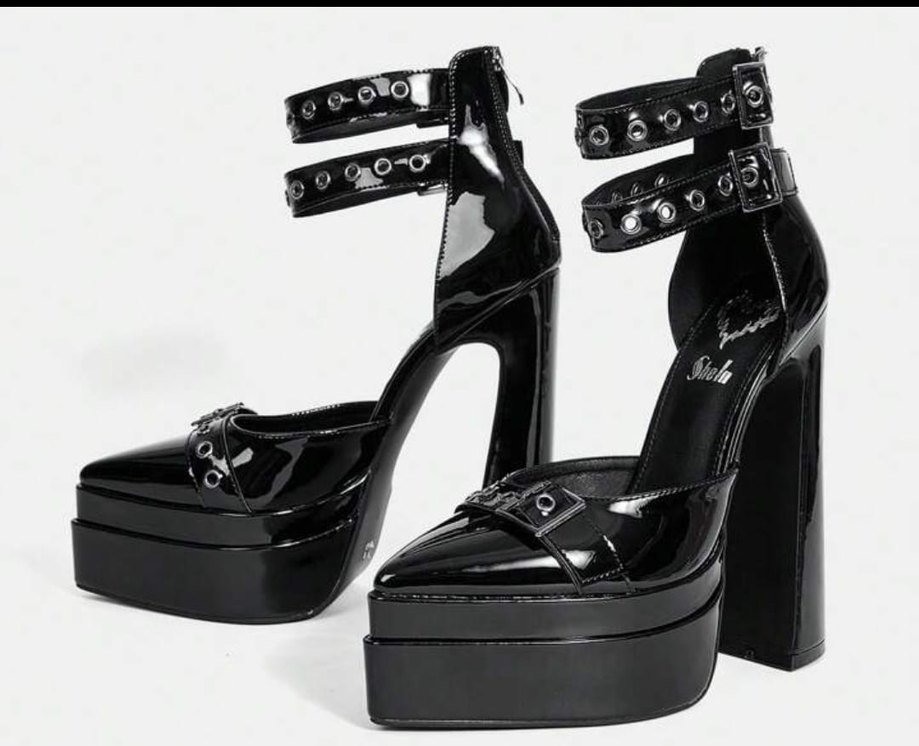 Siyah Deri Gotik Platform Topuklu Ayakkabı