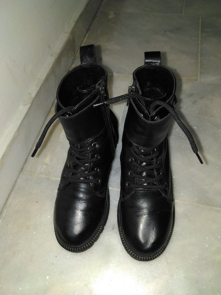 Siyah deri gotik Bayan Botu. Stiletto topuklu kaydırmaz ve tokalı detaylara sahip. İçi peluş sıcak tutar. terletmez. Rock punk tarzına uygun, günlük kullanıma elverişli, desen içermeyen şık tasarım.