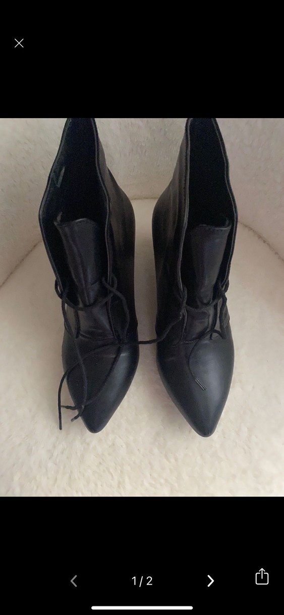Siyah deri, stiletto topuklu ve tokalı kadın çizmesi. Desensiz, gotik tarzda, ofis kullanımı için uygun. Ürün sadık yılmazdan alınmıştır