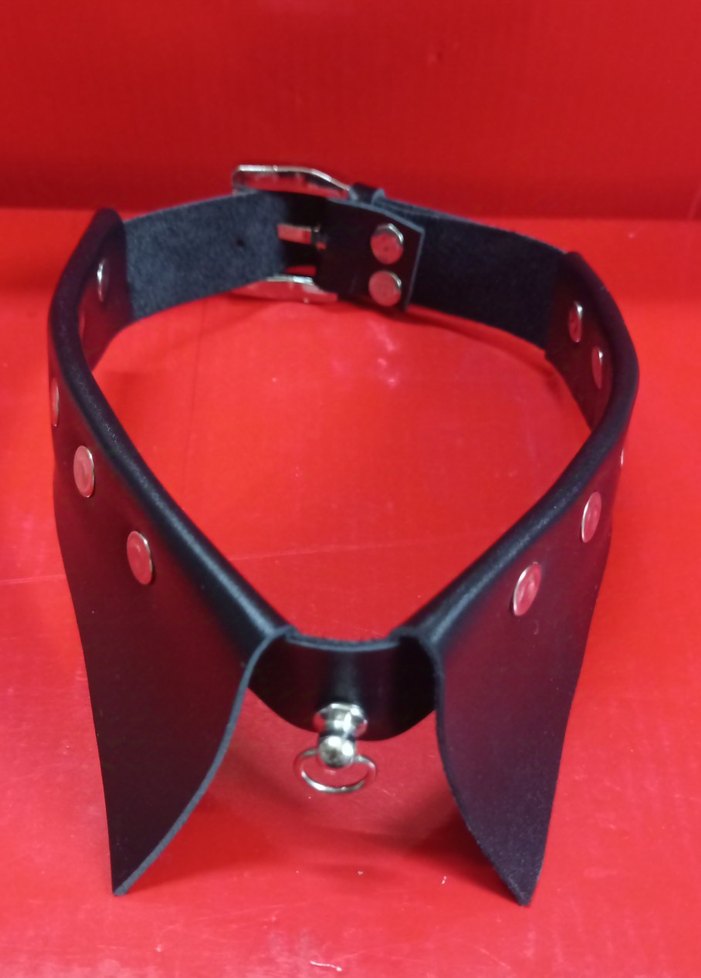 Metal tokalı, siyah deri gotik kadın choker, cesur bir tarz için metal aksesuarlarla tamamlanmıştır.