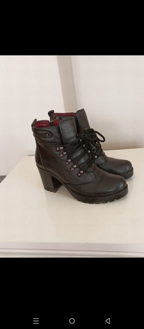 Siyah deri, topuklu ve tokalı gotik tarzda botlar, günlük kullanıma uygun ve şık görünümlü .