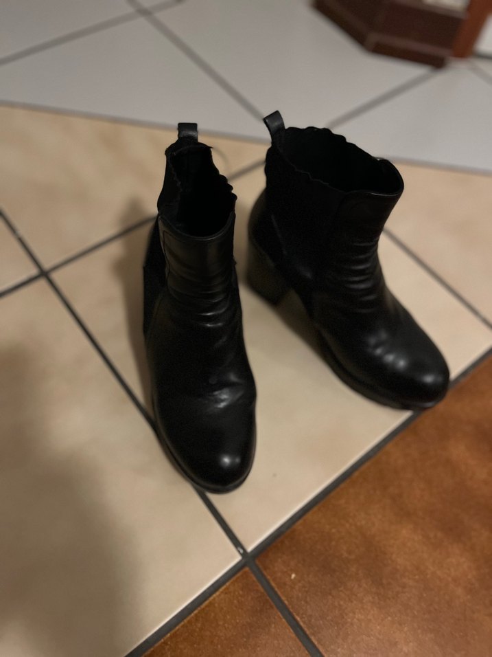 Siyah deri, tok topuklu ve tokalı gotik tarzda kadın botları, günlük kullanıma uygun.