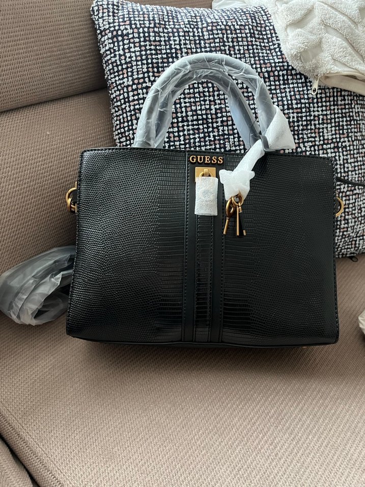 Siyah deri Guess kadın çanta.Orjinal ürün iç etiketini fotoğraflara ekledim.Ayrı koruma çantası mevcut.