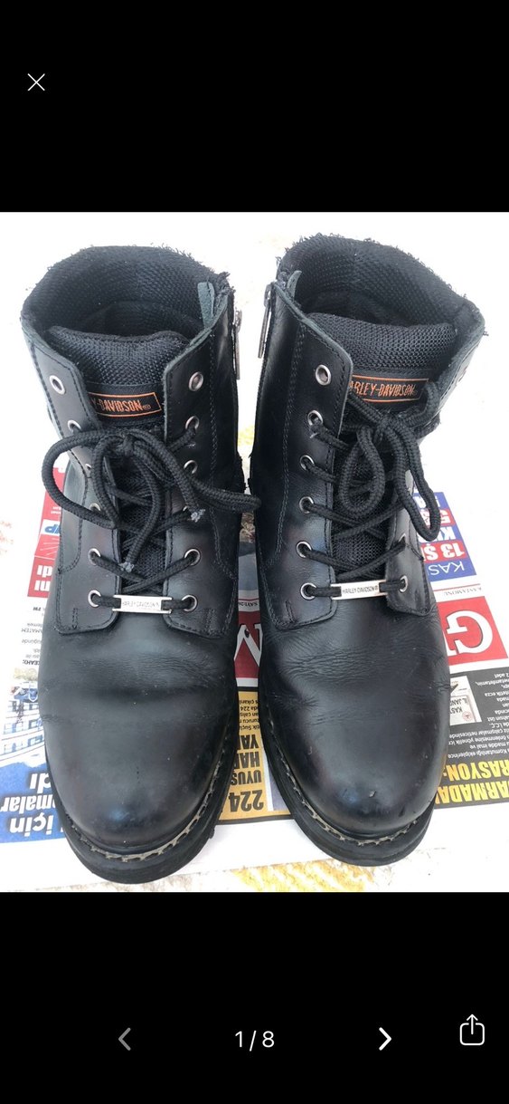 Siyah deri, tokalı biker botlar. Grunge punk tarzını yansıtır. Günlük kullanım için uygun, desensiz ve koyu renklidir.