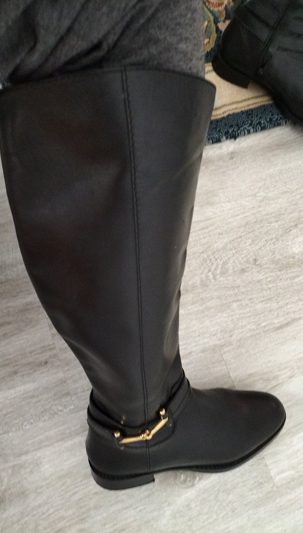 Siyah Deri ici astarlıTokalı uzun Çizme genisletme lastikli