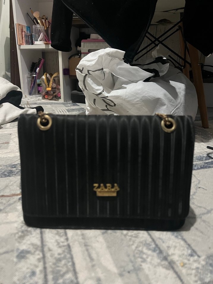 Siyah deriden yapılmış, kabartmalı desenli ve tokalı detaylara sahip kadın çantası. Modern klasik tarzıyla günlük kullanıma uygundur.