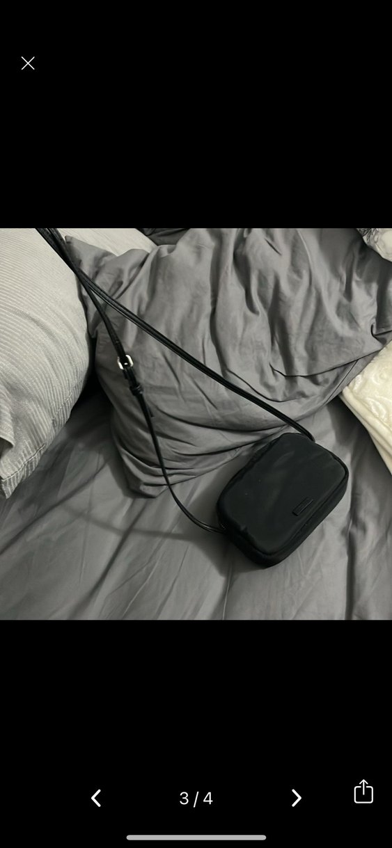 Siyah deri, bel detaylı kadın çapraz çanta, minimalist ve desensiz tasarımıyla günlük kullanıma uygundur.