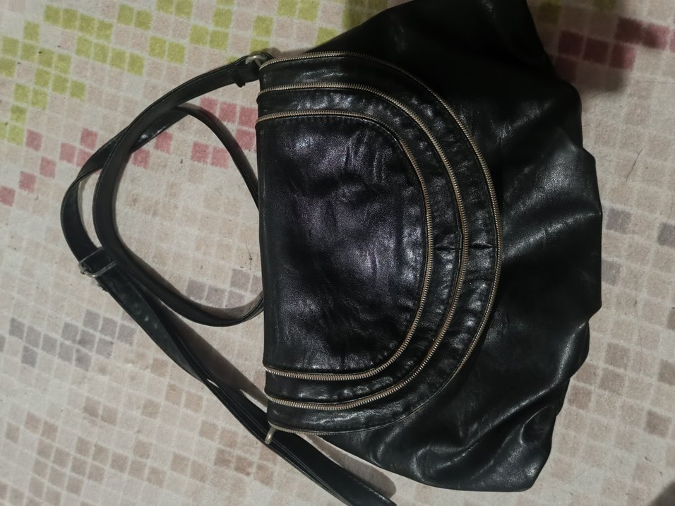 Siyah Deri Kadın Biker Çanta