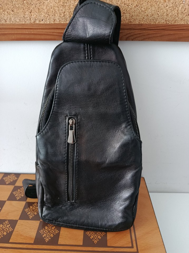 Siyah deri, tokalı biker tarzı kadın çapraz çanta. Minimalist, deseniz ve önünde fermuarlı cep bulunur. Günlük kullanıma uygundur. Hakiki el yapımı deri.Arka kısmında hafif belirgin olmayan renk solması var.Fiyatı uygun tutuyorum alıcısına şimdiden hayırlı olsun.
