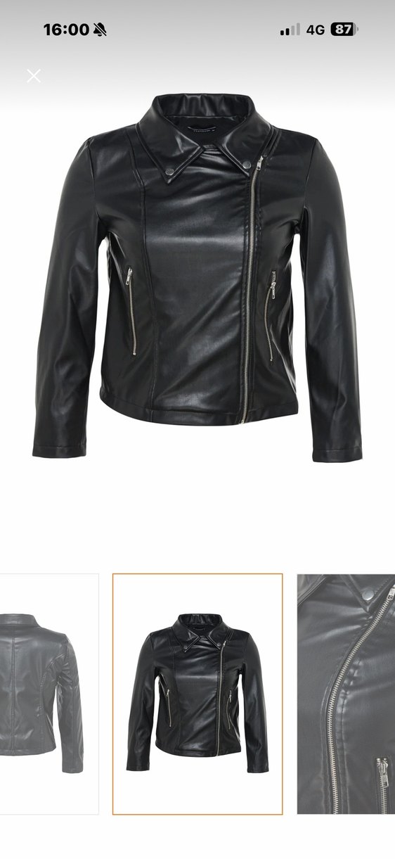 Siyah deri, fermuarlı cepli, yakalı ve dar kesim kadın biker ceket, minimalist ve şık gündelik stil için uygundur.