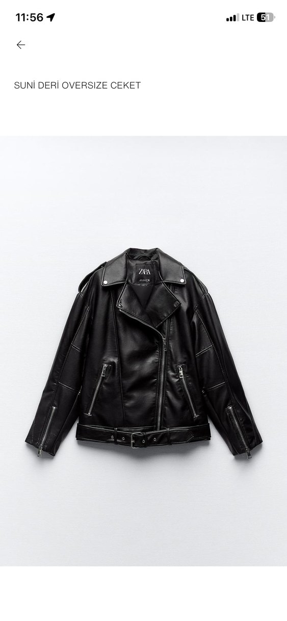Siyah deri, kemerli, yaka detaylı kadın biker ceket. Askılı kollu ve normal kesim, günlük kullanıma uygun.