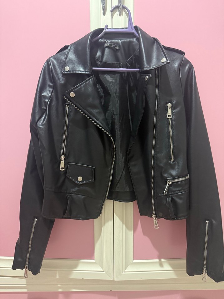 Siyah Deri Kadın Biker Ceket